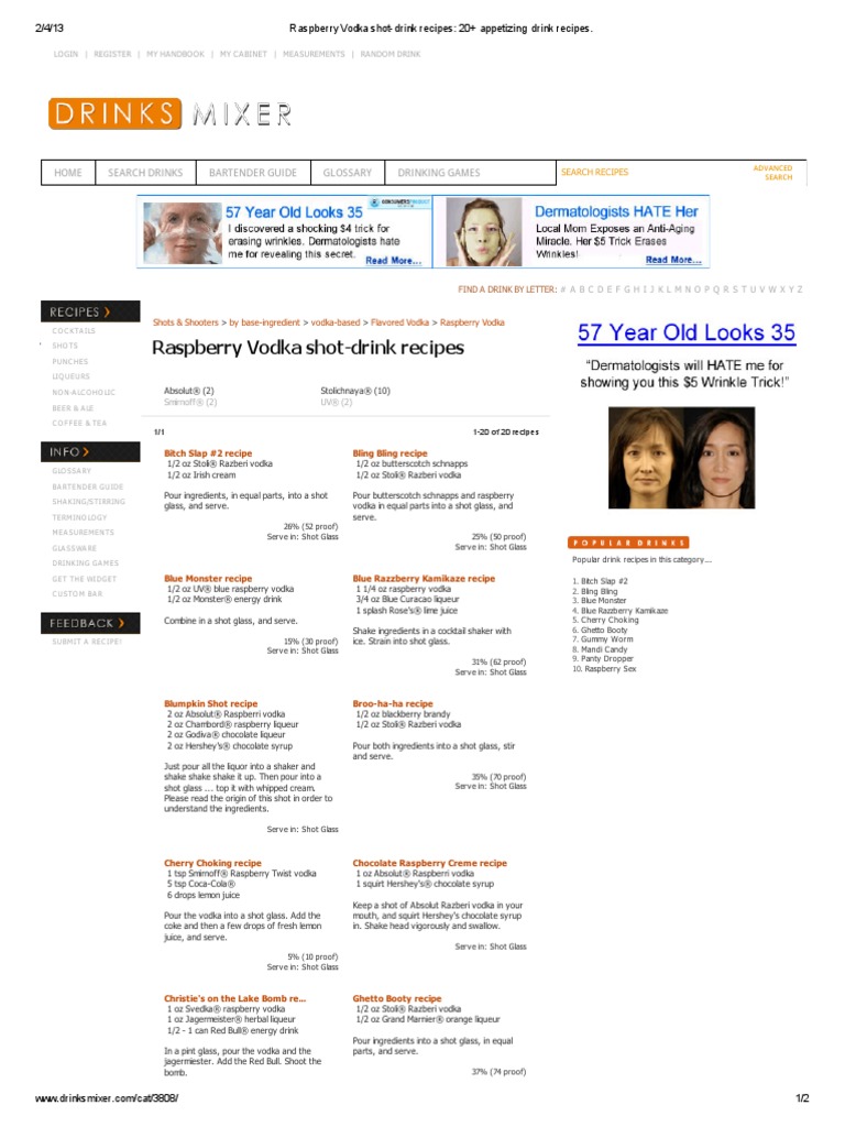 Raspberry Vodka Shot Drink Recipes 20 Appetizing Drink Recipes Pdf Drink Alcoholic Drinks
